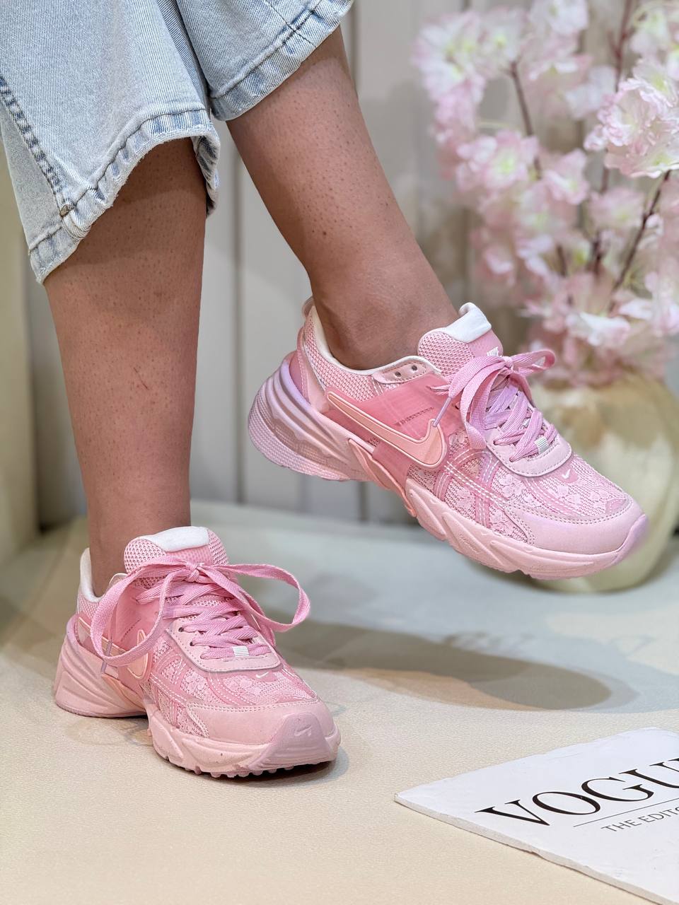 کتونی v2k برند نایکی با زیره پیو کف دوخت (اشتروبل ) زیره بسیار راحت وسبک و رویه طرح دار گلدار بسیار متفاوت و زیبا نسبت به مدلهای مشابهش