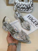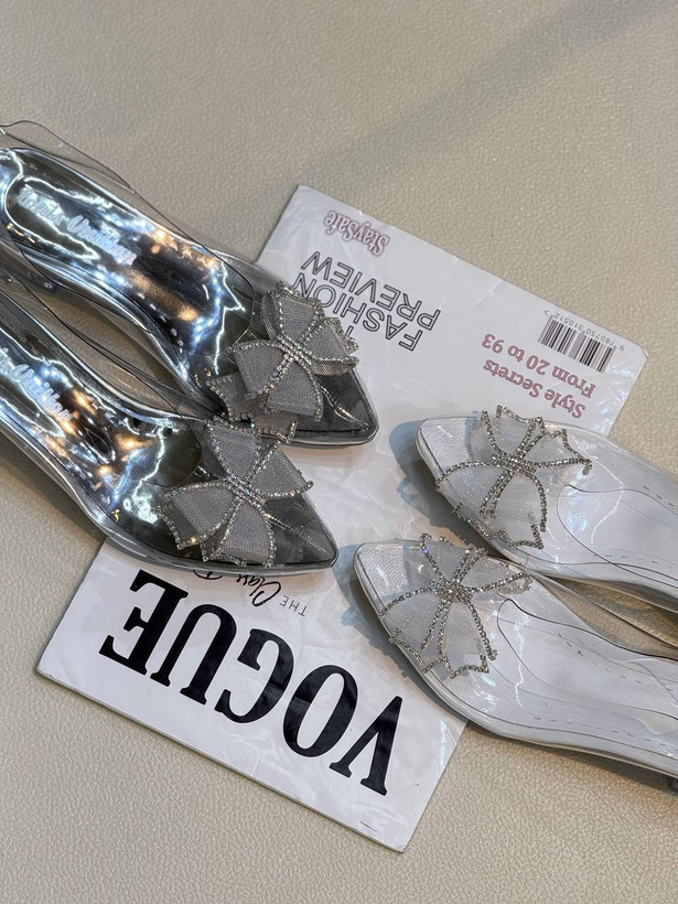 جنس : پاشنه کفش 3 سانت پاشنه پهن می باشد و جنس رویه کار تلق و پاپیون نگین بافت رویه کار استفاده شده