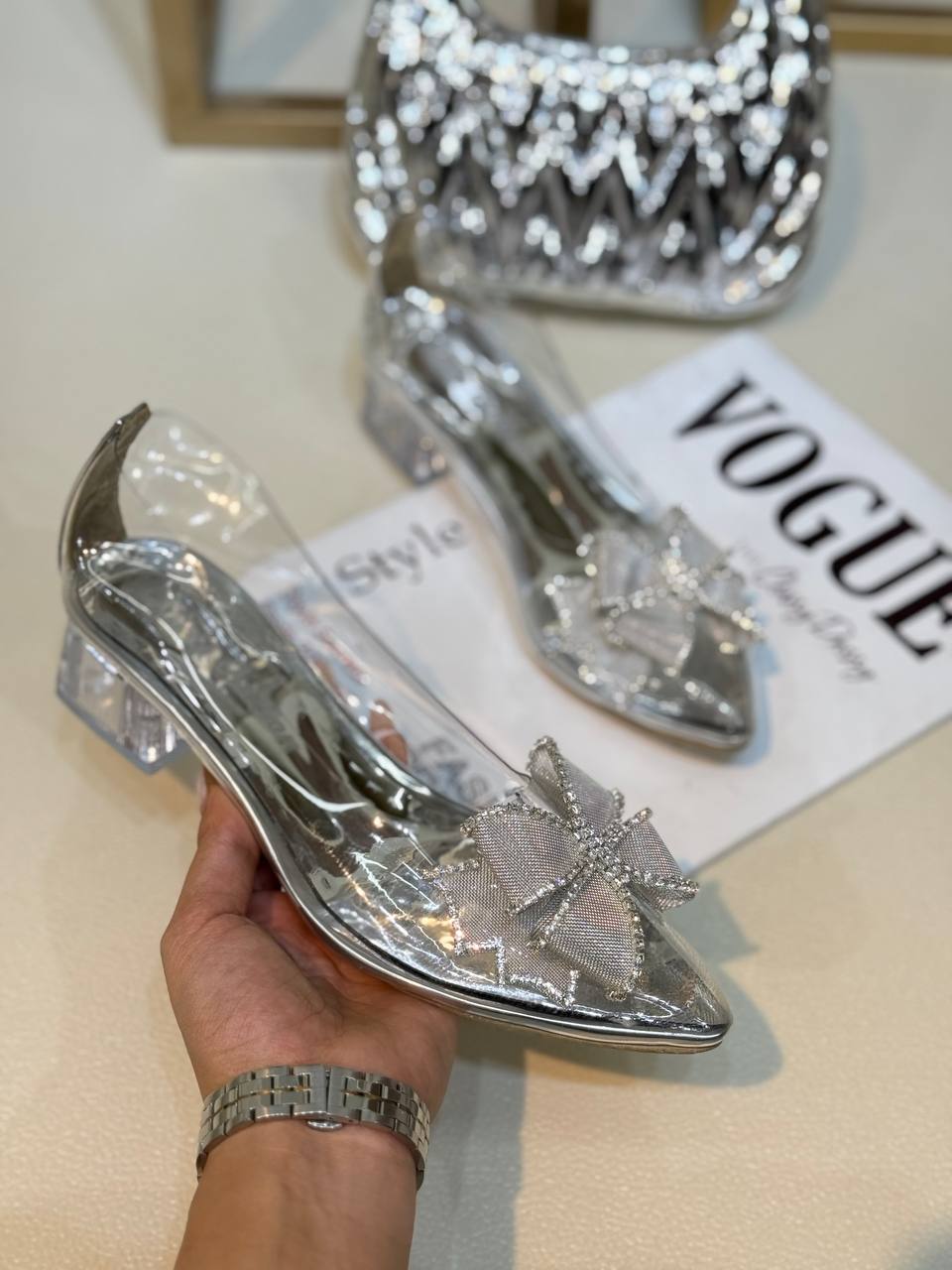 1313 کفش زنانه پاشنه سه سانت تلقی پاپیون نگین