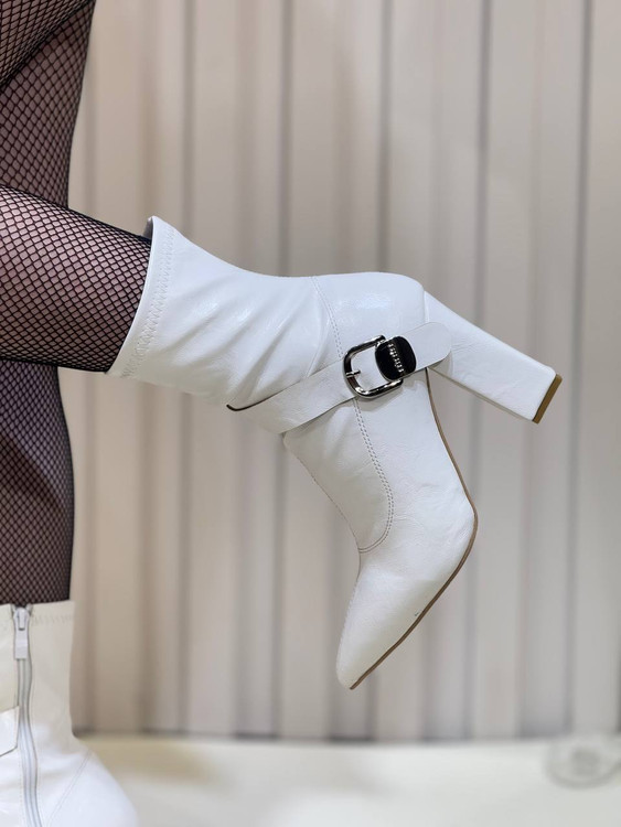 جنس: کد 1329 نیم بوتی از برند میو میو با ساق 26 سانت و پاشنه مبلی 10 سانت رویه کار از جنس بیاله مات ورنی (چرم مصنوعی نه مات و نه براقی ورنی ) بسیار راحت و استایل شیکی دارد