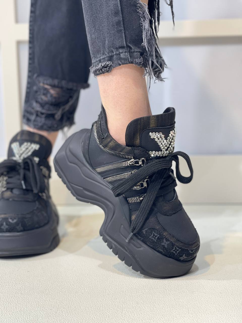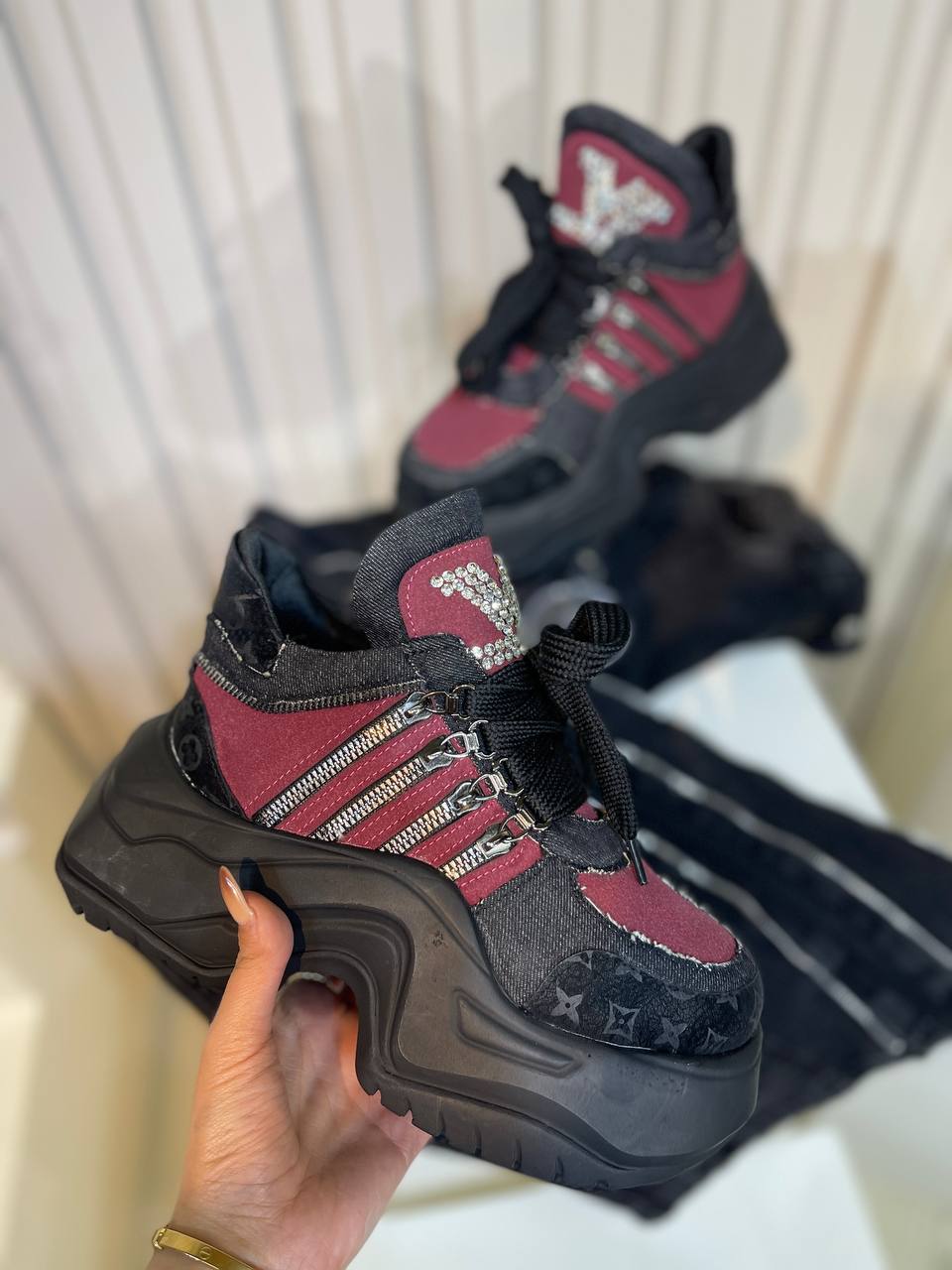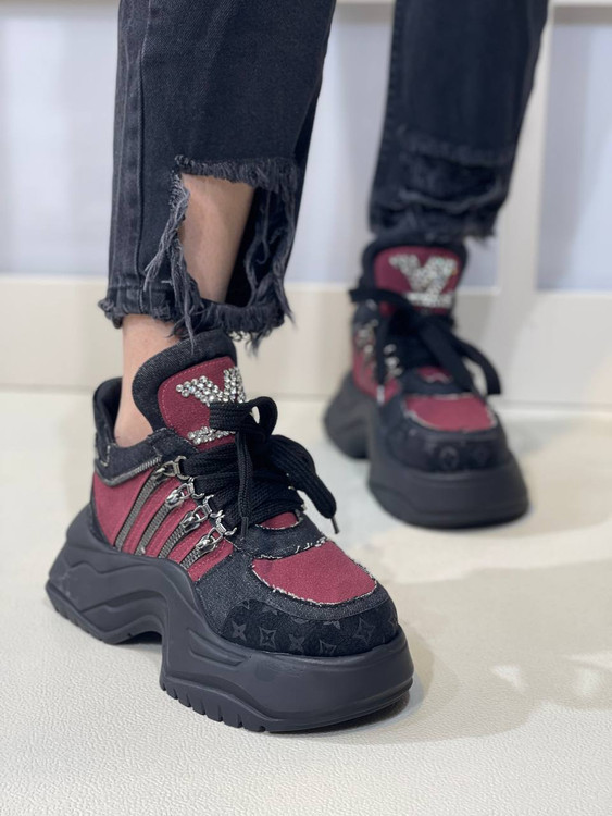 جنس: زیره کار 5 الی 7 سانت از جنس پیو جنس رویه ترکیبی جین و کتان جنس نگین رویه زبانه کریستالی و پرچی